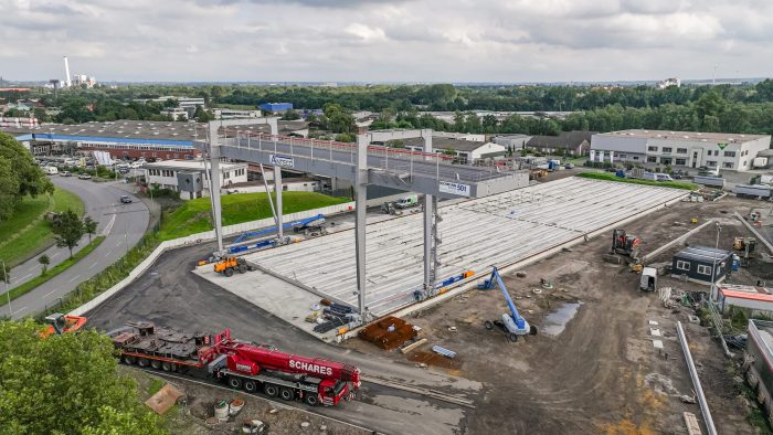 Unser Containerdepot nimmt immer mehr Gestalt an und ein bedeutender Meilenstein wurde erreicht: Unser Portalkran ist erfolgreich aufgestellt.